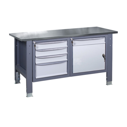 Каркас изготовлен из стали, проходящей предварительную обработку для повышения износостойкости. Покрытие порошковой краской обеспечивает дополнительную устойчивость к воздействию агрессивных сред. Для выполнения различных типов работ можно выбрать один из вариантов столешниц: