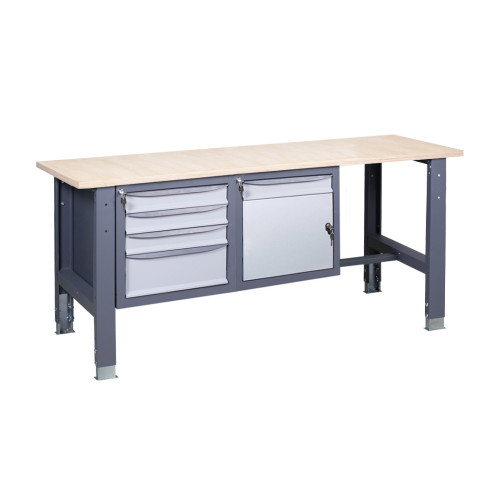 Каркас изготовлен из стали, которая проходит предварительную обработку для защиты от износа. Покрытие порошковой краской обеспечивает дополнительную устойчивость к воздействию агрессивных сред. Для выполнения различных видов работ можно выбрать один из типов столешниц: