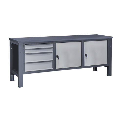 Верстак Тяжелой серии предназначен для выполнения работ в производственных, ремонтных и слесарных цехах, где необходима высокая прочность конструкции. Каркас изготовлен из стали, проходящей фосфатирование для улучшения адгезии порошкового покрытия, которое обеспечивает дополнительную защиту от коррозии и механических повреждений. Конструкция отличается повышенной устойчивостью, а три тумбы создают оптимальные условия для организации рабочего пространства и хранения инструментов.