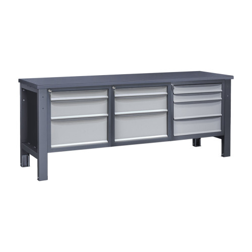Верстак Тяжелой серии предназначен для выполнения работ в производственных, ремонтных и слесарных цехах, где необходима высокая прочность конструкции. Каркас изготовлен из стали, проходящей фосфатирование для улучшения адгезии порошкового покрытия, которое обеспечивает дополнительную защиту от коррозии и механических повреждений. Конструкция отличается повышенной устойчивостью, а три тумбы создают оптимальные условия для организации рабочего пространства и хранения инструментов.