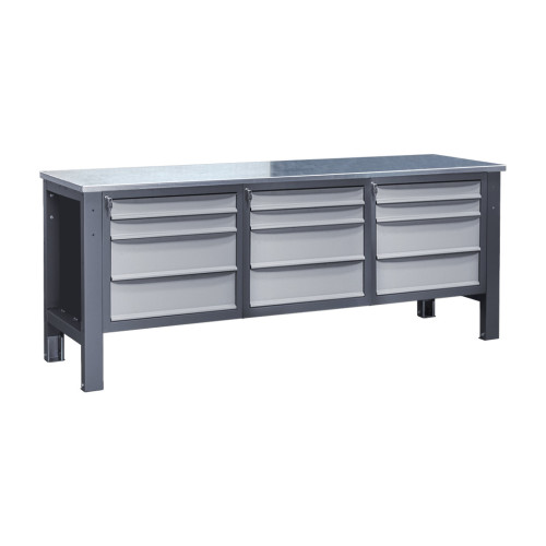 Три тумбы обеспечивают больше места для хранения инструментов и материалов, что позволяет поддерживать порядок на рабочем месте. Оцинкованные и нержавеющие чехлы повышают износостойкость столешницы, резиновое покрытие улучшает сцепление, а крашеный металл обеспечивает дополнительную прочность.