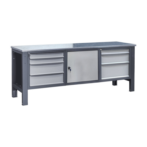 Три тумбы обеспечивают больше места для хранения инструментов и материалов, что позволяет поддерживать порядок на рабочем месте. Оцинкованные и нержавеющие чехлы повышают износостойкость столешницы, резиновое покрытие улучшает сцепление, а крашеный металл обеспечивает дополнительную прочность.