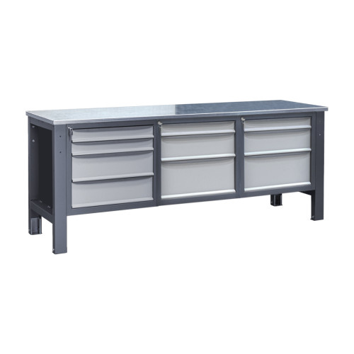 Три тумбы обеспечивают больше места для хранения инструментов и материалов, что позволяет поддерживать порядок на рабочем месте. Оцинкованные и нержавеющие чехлы повышают износостойкость столешницы, резиновое покрытие улучшает сцепление, а крашеный металл обеспечивает дополнительную прочность.