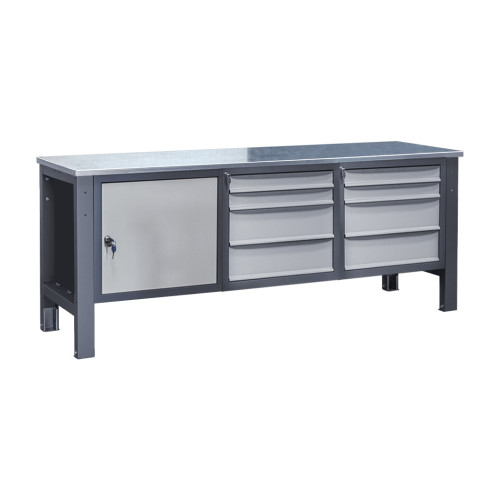 Три тумбы обеспечивают больше места для хранения инструментов и материалов, что позволяет поддерживать порядок на рабочем месте. Оцинкованные и нержавеющие чехлы повышают износостойкость столешницы, резиновое покрытие улучшает сцепление, а крашеный металл обеспечивает дополнительную прочность.