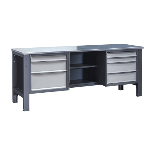 Три тумбы обеспечивают больше места для хранения инструментов и материалов, что позволяет поддерживать порядок на рабочем месте. Оцинкованные и нержавеющие чехлы повышают износостойкость столешницы, резиновое покрытие улучшает сцепление, а крашеный металл обеспечивает дополнительную прочность.