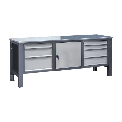 Три тумбы обеспечивают больше места для хранения инструментов и материалов, что позволяет поддерживать порядок на рабочем месте. Оцинкованные и нержавеющие чехлы повышают износостойкость столешницы, резиновое покрытие улучшает сцепление, а крашеный металл обеспечивает дополнительную прочность.