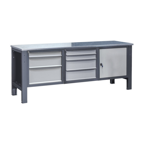 Три тумбы обеспечивают больше места для хранения инструментов и материалов, что позволяет поддерживать порядок на рабочем месте. Оцинкованные и нержавеющие чехлы повышают износостойкость столешницы, резиновое покрытие улучшает сцепление, а крашеный металл обеспечивает дополнительную прочность.