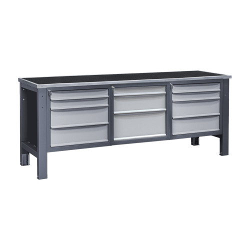 Три тумбы обеспечивают больше места для хранения инструментов и материалов, что позволяет поддерживать порядок на рабочем месте. Оцинкованные и нержавеющие чехлы повышают износостойкость столешницы, резиновое покрытие улучшает сцепление, а крашеный металл обеспечивает дополнительную прочность.