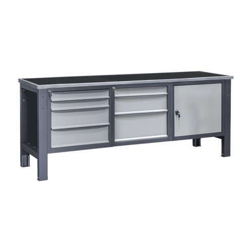 Три тумбы обеспечивают больше места для хранения инструментов и материалов, что позволяет поддерживать порядок на рабочем месте. Оцинкованные и нержавеющие чехлы повышают износостойкость столешницы, резиновое покрытие улучшает сцепление, а крашеный металл обеспечивает дополнительную прочность.