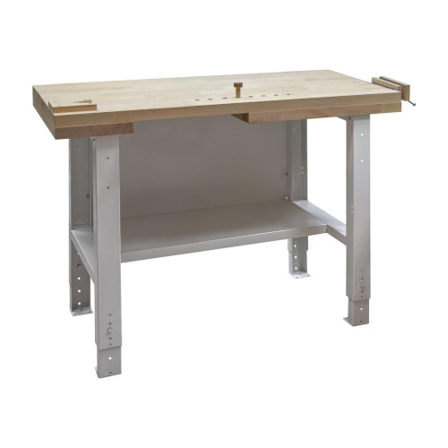 Верстак является основным рабочим местом столяра. Он должен быть надежным и просторным. Модель стола ВС 21 БЛ оснащена широкой столешницей. Она выполнена из натурального бука толщиной 40 мм. На ее поверхности предусмотрены отверстия, а также выступы для крепления заготовок. Особенностью модели являются тиски, закрепленные на боковой части верстака. Они нужны для фиксации брусков в нужном положении. Это повышает точность работ, поэтому мастер реже допускает ошибки. Столешница достаточно прочная, чтобы выдерживать последствия ежедневного использования. Она не требует особого ухода, а также легко поддается очистке.
