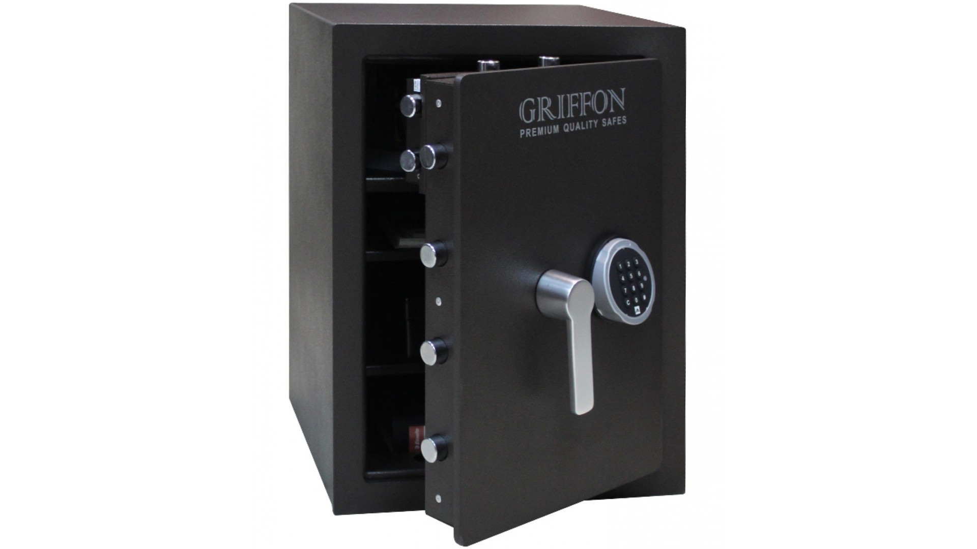 Модель соответствует I классу взломостойкости по стандарту EN 1143-1, что обеспечивает высокий уровень защиты. Толщина стенок – 25 мм, что повышает стойкость конструкции к физическим воздействиям. Система запирания реализована в виде ригельного механизма трехстороннего действия, включающего 8 хромированных активных ригелей диаметром 25 мм. Дополнительную защиту обеспечивают антиспилы со стороны петель.
