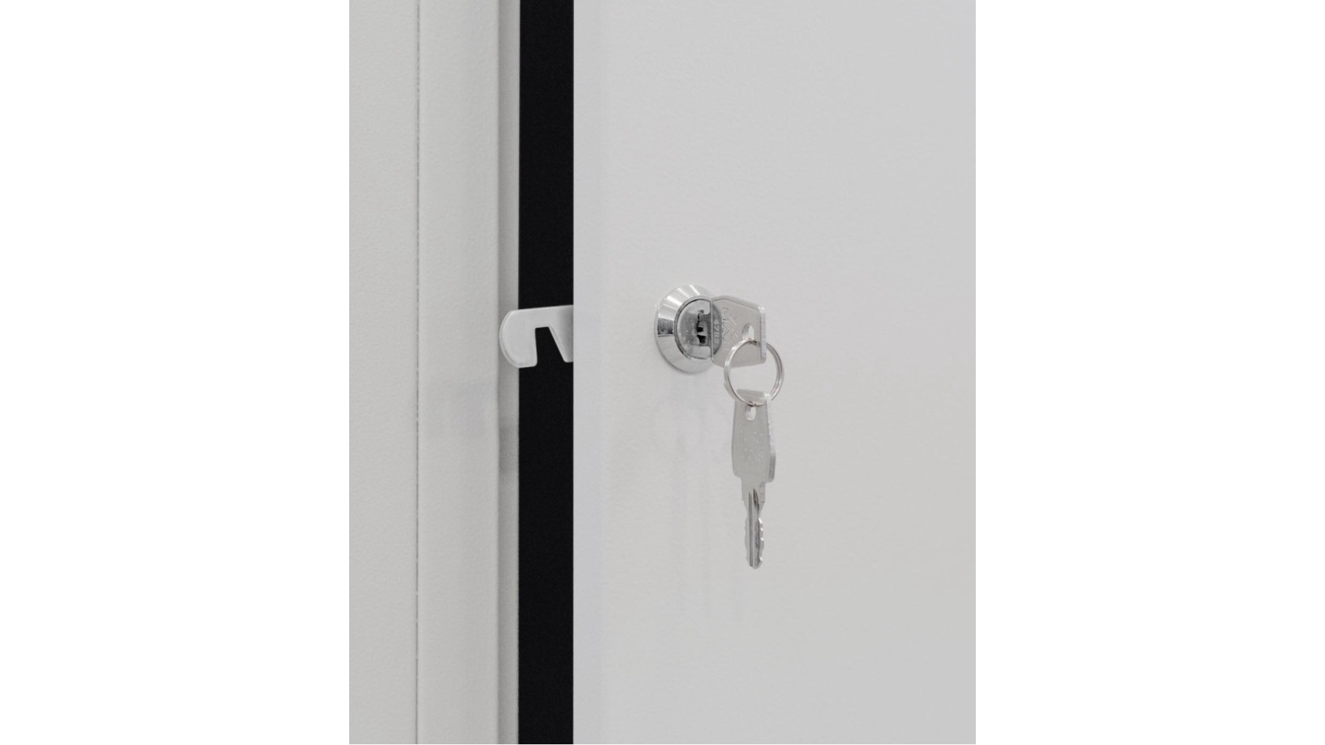 Корпус виготовлений із металу, стійкого до зношування та механічного впливу. Ключовий механізм працює плавно, забезпечує стабільне закривання дверей і мінімізує ризик заклинювання. Комплект постачається разом із ключем, що дозволяє одразу вводити замок в експлуатацію. Це оптимальний вибір для офісів, підприємств, спортзалів та інших приміщень, де шафи інтенсивно використовуються багатьма користувачами.
