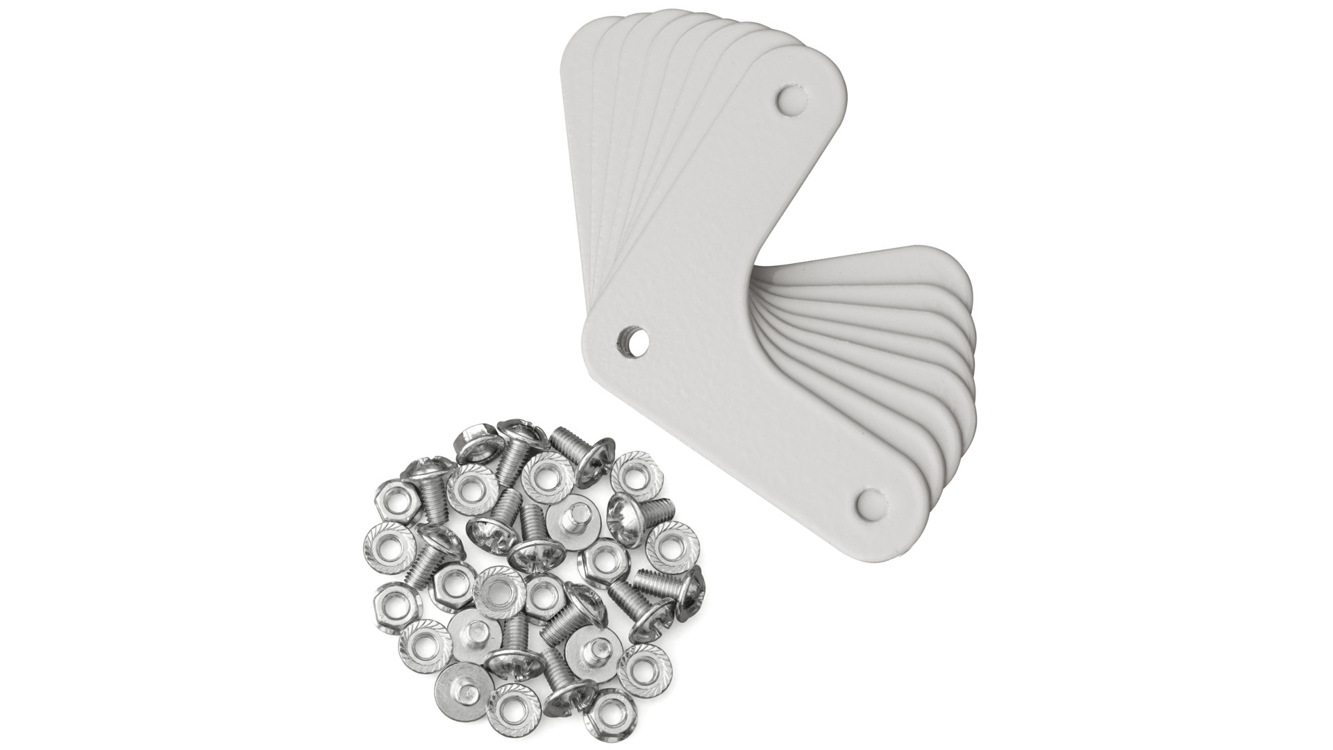 Комплект кріплення полиці СК, СТС – це набір монтажних елементів для фіксації полиць до металевих стелажів серій СК і СТС. Виріб призначений для збирання полиць на гвинтовому з’єднанні, забезпечуючи надійну фіксацію елементів конструкції. Комплект підходить для моделей стелажів зі стійками відповідного типу. Його використання дозволяє підтримувати цілісність з'єднань під навантаженням, знижуючи ризик деформацій. Елементи виготовлені зі сталі та мають покриття сірого кольору