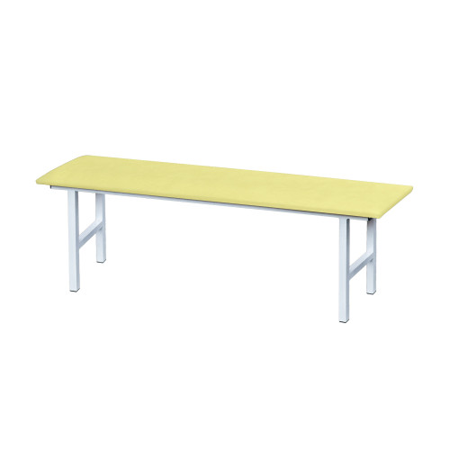 Модель МБ-3 має сталевий каркас із профільної труби, що забезпечує високу міцність і стійкість до щоденного навантаження. Поверхня пофарбована білою порошковою фарбою, яка захищає метал від корозії та витримує регулярну дезінфекцію. Сидіння має безшовну оббивку зі штучної шкіри, стійку до стирання, легко очищується і зберігає охайний вигляд навіть при тривалому використанні. Габарити виробу: довжина 1300 мм, ширина 380 мм, висота 420 мм, що забезпечує достатньо місця для трьох осіб. Вага становить 15 кг.