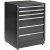 Габарити виробу становлять 675х870х600 мм (ШхВхГ). Металеві поверхні вкриті порошковою фарбою RAL7016 (антрацитово-сірий), що підвищує захист від вологи, корозії. Тумба обладнана телескопічними напрямними повного висування з дотягувачем, які забезпечують плавність ходу шухляд. Допустиме навантаження на кожну шухляду – 40 кг.