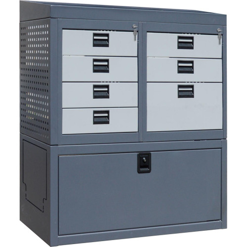 Автомобільний модуль 12/4-Т/П/2М2С та 12/4-Т/П/4М призначений для організації простору в пересувних майстернях і мобільних СТО. Каркас конструкції виготовлений із міцного сталевого профілю, який гарантує необхідну міцність і стабільність. Це дає змогу надійно закріпити інструмент і обладнання під час руху автомобіля, виключаючи ризик його падіння або пошкодження.