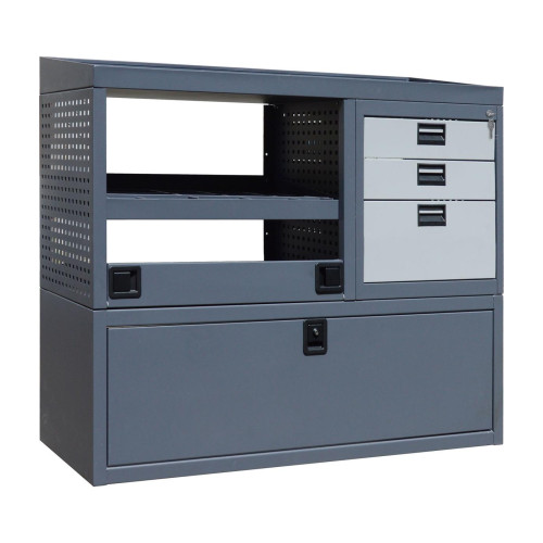 Автомобільний модуль 12/4-Т/П/2М2С та 12/4-Т/П/4М призначений для організації простору в пересувних майстернях і мобільних СТО. Каркас конструкції виготовлений із міцного сталевого профілю, який гарантує необхідну міцність і стабільність. Це дає змогу надійно закріпити інструмент і обладнання під час руху автомобіля, виключаючи ризик його падіння або пошкодження.