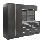 Промислові меблі для гаража проходять попередню обробку, яка покращує захист металу від корозії. Це важливо при використанні обладнання у виробничих приміщеннях з нестабільним мікрокліматом або при контакті з рідинами. Поверхні меблів додатково покриті порошковою фарбою універсального темно-сірого кольору, що підвищує стійкість до зношування та доповнює інтер'єр. Завдяки цьому, навіть недорогі промислові меблі довгий час зберігають свою функціональність, забезпечуючи надійність використання в різних умовах.
