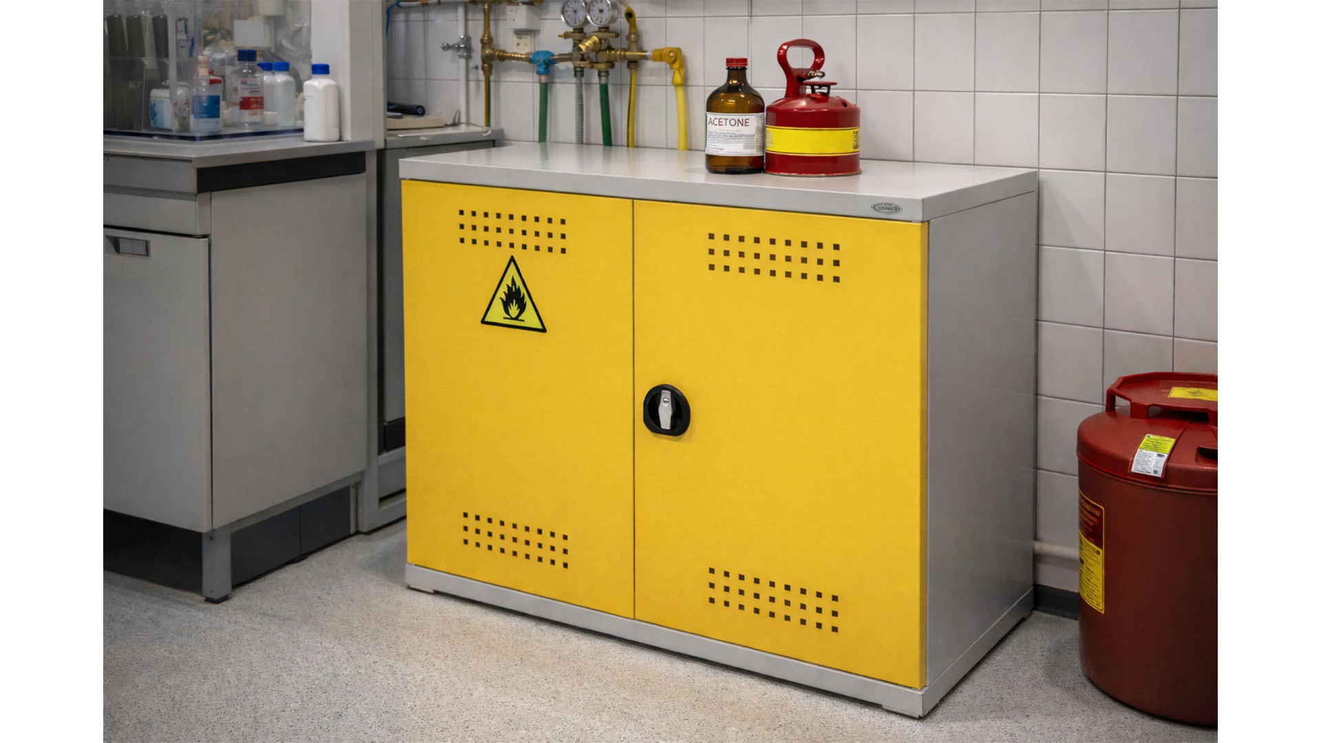 Шафа для легкозаймистих речовин ШЛР-10/780 призначена для безпечного зберігання хімічних компонентів і рідин, схильних до займання, у виробничих приміщеннях, лабораторіях, на складах та інших промислових об’єктах. Конструкція забезпечує ізольоване середовище для зберігання небезпечних речовин відповідно до вимог пожежної безпеки, знижуючи ризик аварійних ситуацій завдяки продуманому корпусу та захисним рішенням.