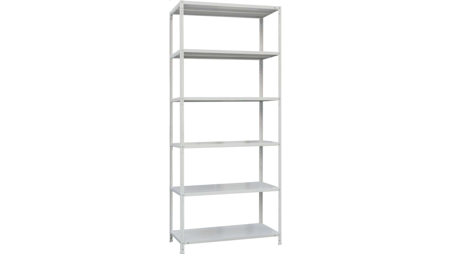 Каркас складається зі стійок цільного типу та стандартних металевих полиць. З’єднання елементів виконано гвинтовим способом. Конструкція полиці витримує навантаження до 120 кг, що дозволяє розміщувати вантажі середньої маси. У процесі виробництва метал проходить попередню обробку, після чого наноситься порошкова фарба. Це покриття підвищує стійкість до корозії, подряпин і дії вологи. Кількість полиць зазначено в таблиці технічних параметрів.