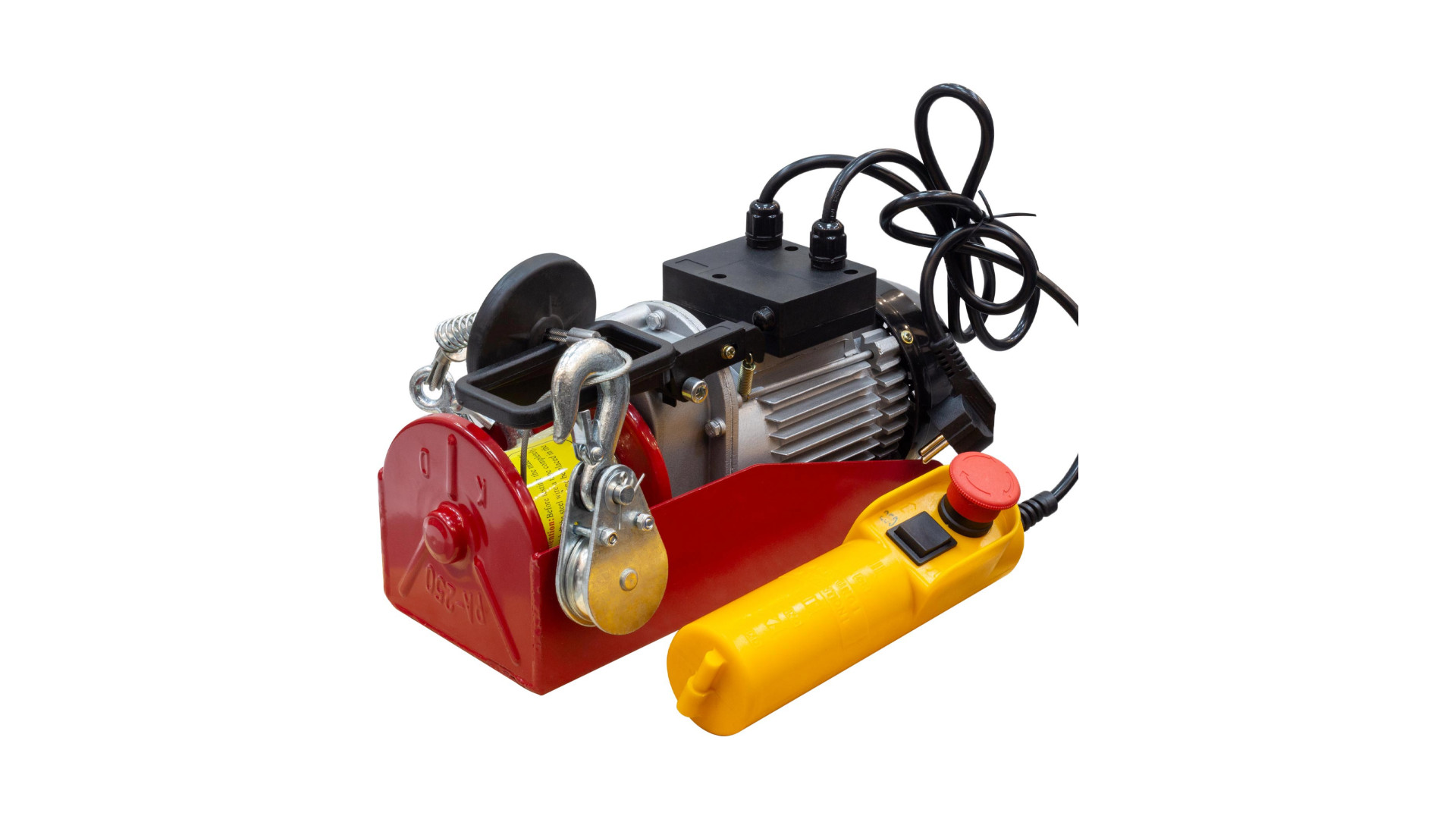 Електротельфер FPA250 – це канатний підйомний механізм, що використовується для переміщення, підйому або опускання вантажів малої та середньої тяжкості. Модель оснащена електричним двигуном потужністю 0,73 кінських сил, що забезпечує швидкість підйому без блоку до 10 м/хв та 5 м/хв із блоком. Пристрій підтримує вантажопідйомність до 125 кг без блоку та до 250 кг із блоком. Довжина каната становить 12 м, що дозволяє здійснювати підйом на висоту до 12 м без блоку або до 6 м із блоком.