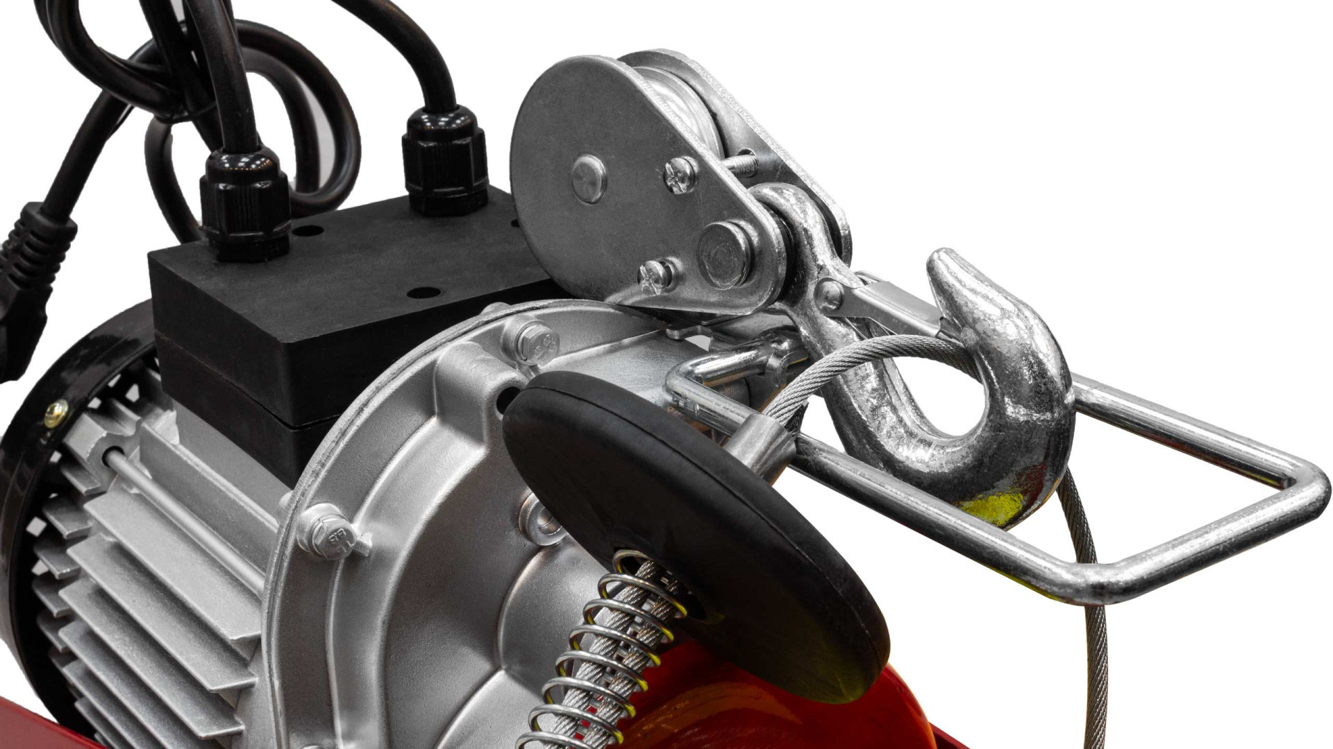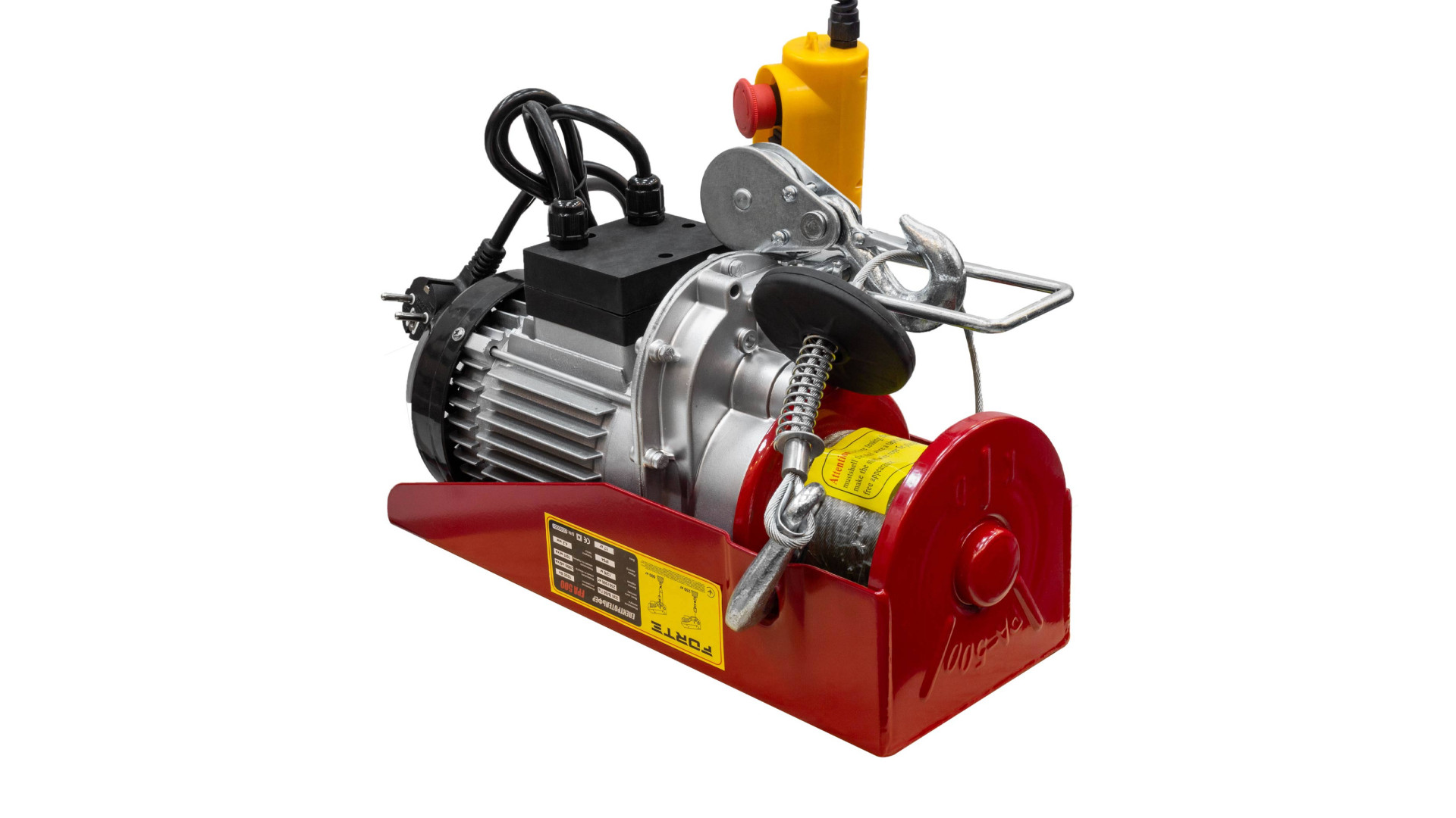 Електротельфер FPA500 – це високопродуктивний канатний механізм для підйому вантажів середньої тяжкості. Модель оснащена електродвигуном потужністю 1,39 кінських сил, який забезпечує швидкість підйому до 10 м/хв без блоку та 5 м/хв із блоком. Пристрій розрахований на підйом вантажів вагою до 250 кг без блоку та до 500 кг із блоком. Довжина каната становить 12 м, що дозволяє виконувати підйом на висоту до 12 м без блоку та до 6 м із блоком.