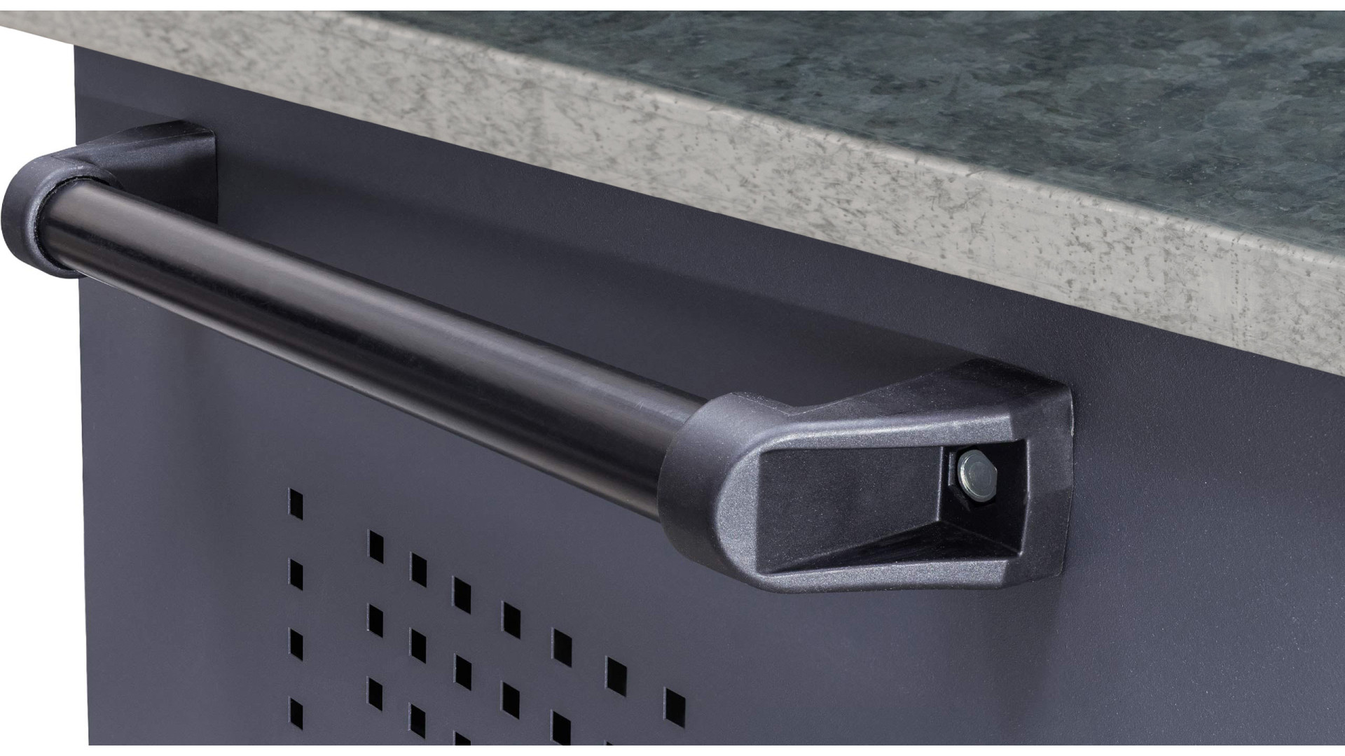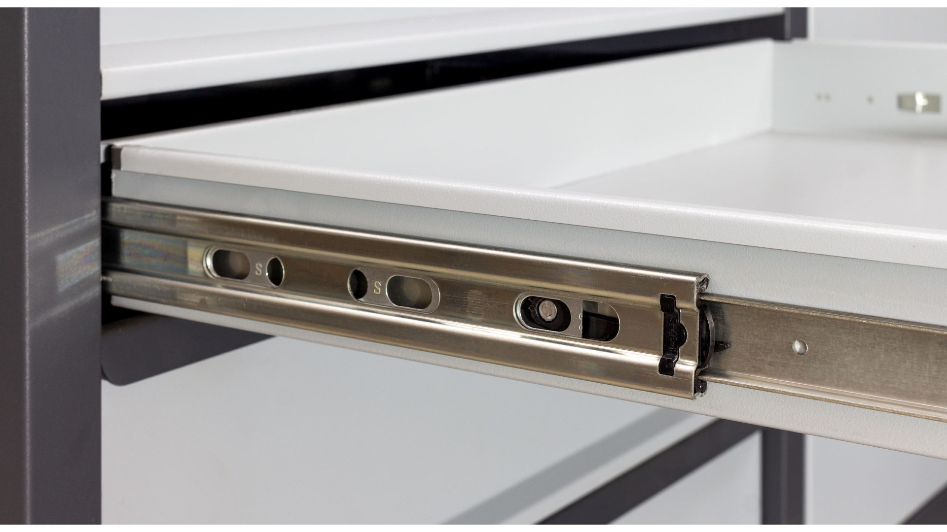 Металевий каркас забезпечує стабільність і витримує інтенсивні навантаження. Порошкове покриття створює додатковий бар'єр від впливу зовнішніх факторів. Залежно від специфіки робіт можна обрати один із варіантів стільниць:
