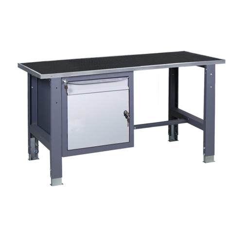 Верстак серії ВР – це функціональний робочий стіл для обладнання майстерень та виробничих приміщень. Конструкція складається з металевого каркаса, що проходить фосфатну обробку перед нанесенням порошкової фарби. Це забезпечує захист від корозії та механічних пошкоджень. Верстак оснащений тумбою, яку можна обрати залежно від потреб робочого процесу. Він підходить для підприємств, що потребують міцного та організованого робочого простору.
