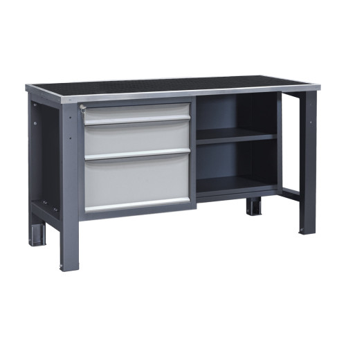Верстак Важкої серії – це надійний робочий стіл для виконання інтенсивних навантажень у виробничих, ремонтних і слюсарних цехах. Каркас виготовлений із металу, який проходить попередню обробку методом фосфатування, що покращує адгезію фарби, та покривається порошковою фарбою для захисту від корозії та механічних пошкоджень. Конструкція забезпечує високу стійкість під час експлуатації, а дві тумби дозволяють організувати зручне зберігання інструментів і витратних матеріалів.