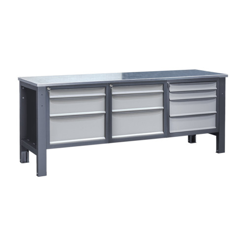 Тумби дозволяють ефективно організувати робочий простір, зберігаючи необхідний інструмент під рукою. Оцинковані та нержавіючі чохли підвищують зносостійкість стільниці, гумове покриття покращує зчеплення, а фарбований метал забезпечує додаткову міцність.