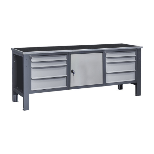 Верстак Важкої серії – це надійний робочий стіл для виконання інтенсивних навантажень у виробничих, ремонтних і слюсарних цехах. Каркас виготовлений із металу, який проходить попередню обробку методом фосфатування, що покращує адгезію фарби, та покривається порошковою фарбою для захисту від корозії та механічних пошкоджень. Конструкція забезпечує високу стійкість під час експлуатації, а дві тумби дозволяють організувати зручне зберігання інструментів і витратних матеріалів.
