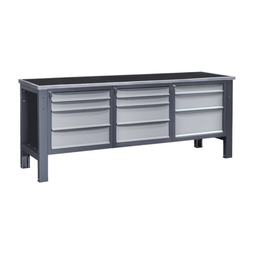 Верстак Важкої серії – це надійний робочий стіл для виконання інтенсивних навантажень у виробничих, ремонтних і слюсарних цехах. Каркас виготовлений із металу, який проходить попередню обробку методом фосфатування, що покращує адгезію фарби, та покривається порошковою фарбою для захисту від корозії та механічних пошкоджень. Конструкція забезпечує високу стійкість під час експлуатації, а дві тумби дозволяють організувати зручне зберігання інструментів і витратних матеріалів.