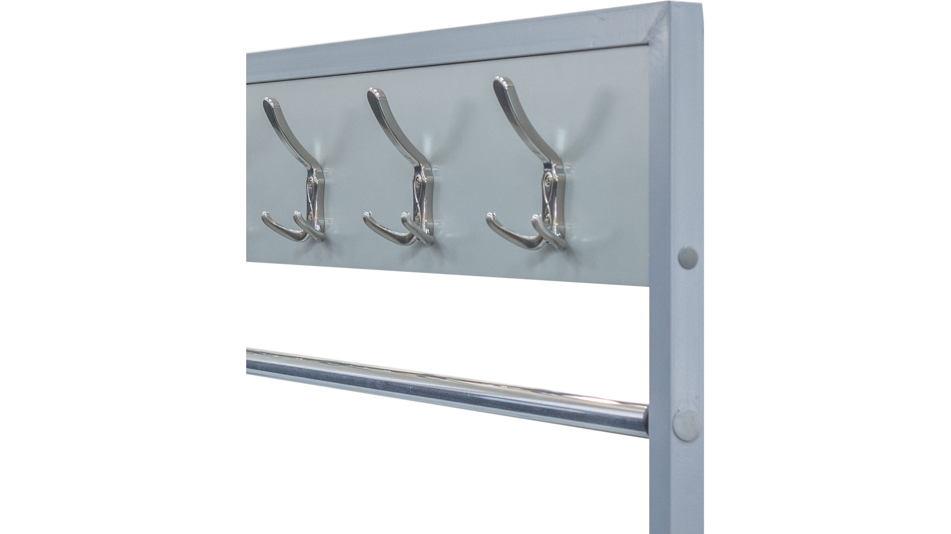 У конструкції вішалки використовується панель МДФ, на яку кріпляться гачки. Вона надає виробу виразний вигляд, який підкреслює стиль інтер'єру. Кожен гачок поділений на два елементи для зручного використання співробітником. Двостороння вішалка відрізняється місткістю, яка перевищує офісні шафи. За стійкість обладнання відповідають опори, на підставі яких встановлено гумове покриття. Це збільшує надійність установки, щоб людина випадково не перекинув вішалку. Вибираючи меблі, заздалегідь визначте місце установки. З цим допоможе менеджер УХЛ-МАШ, який проконсультує в актуальних питаннях. Замовляйте офісні вішалки в асортименті виробника за вигідною ціною.